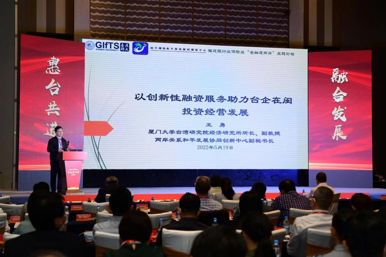 2022年5月19日上午,我院经济所所长王勇副教授受邀于漳州参加由福建金融工会和福建金融团工委联合主办的“福建银行业保险业‘金融通两岸’主题论坛”,并做论坛主题发言:《以创新性融资服务助力台企在闽投资经营发展》。发言内容主要包括:“台湾地区扶持中小企业发展的融资措施”、“福建省吸引台资企业投资现况”、“台企在闽投资经营存在融资‘瓶颈’”、“为台企在福建投资经营提供创新性融资服务支持”等四部分。此次论坛做主题发言的另外两位嘉宾分别为:兴业银行首席经济学家鲁政委博士、厦门银行吴昕颢行长。