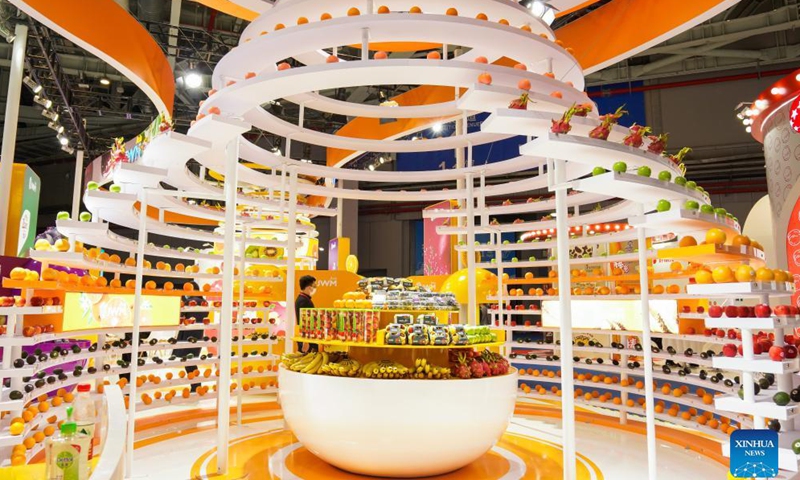 Fruits are on display at the Food and Agricultural Products Exhibition Area of the 4th China International Import Expo (CIIE) in east China's Shanghai, Nov. 6, 2021.Photo:Xinhua