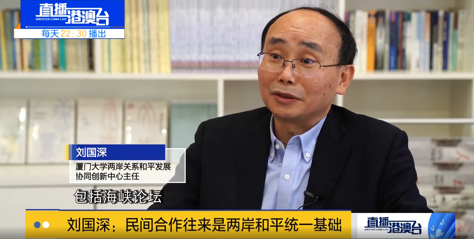 刘国深教授从海峡论坛开办之初起就是亲历者和推动者,在深圳卫视直播港澳台栏目的采访中,刘国深教授表示,两岸民间合作往来是两岸和平统一的基础,许多台湾朋友不惧台当局的恐吓前来厦门参会,正体现出两岸民间合作交流重要平台的吸引力。