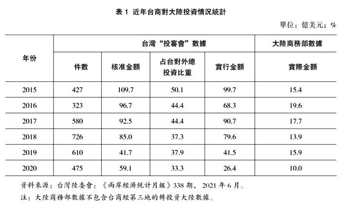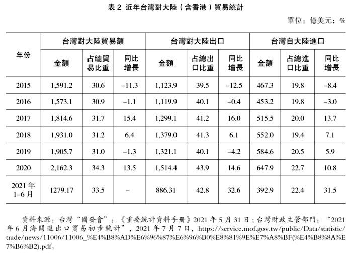 ③台湾陆委会:《两岸经济统计月报》338期,2021年6月。
