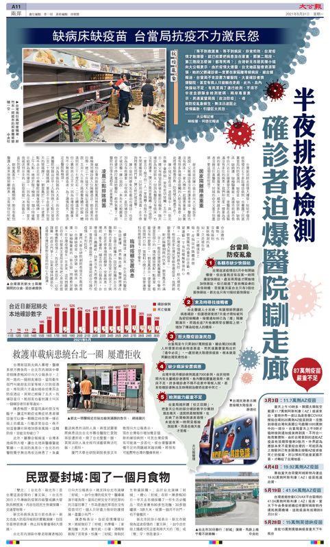 台湾新冠肺炎疫情大爆发,短短半个月就急增近七千多起确诊病例,也暴露了民进党当局的防疫漏洞:缺疫苗、缺快筛、缺病床、缺病护、缺检验量能。高雄市前副市长李四川近日在脸书发文痛批:当医院走道躺满没有床位的病患,我们和印度一样要为得病的家人四处张罗氧气瓶,越来越多的确诊者没办法住进医院,封城的命令又看不到尽头,要这个政府何用?