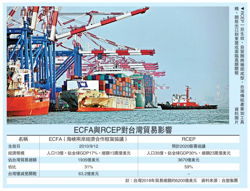 图:RCEP一旦生效,自贸圈将稳固成型,台湾传统产业如工具机、钢筋出口到东盟或面临高额关税资料图片