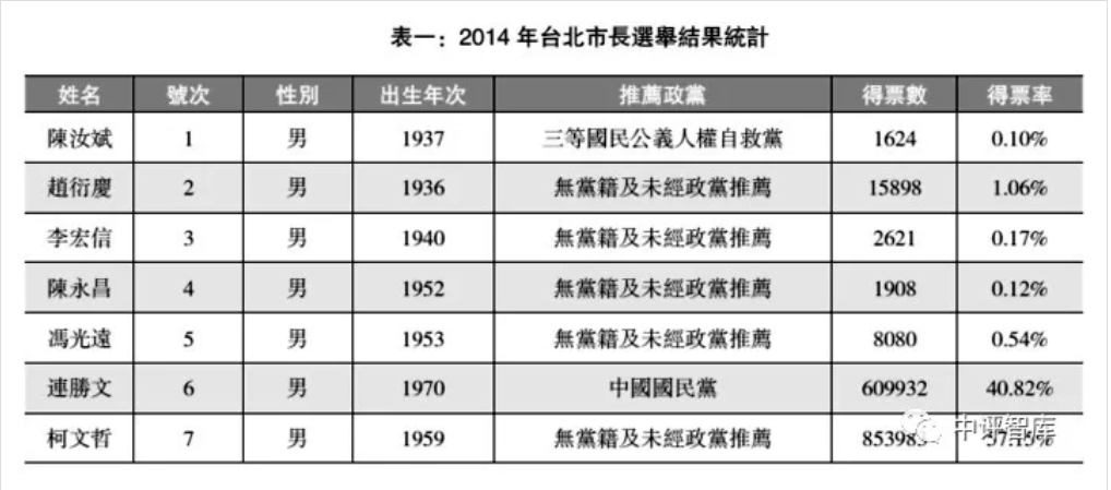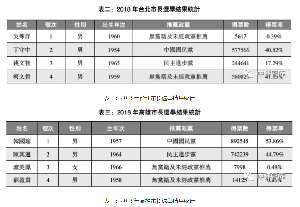 四、2014年柯文哲以绝对多数当选,2018年韩国瑜以绝对多数胜出