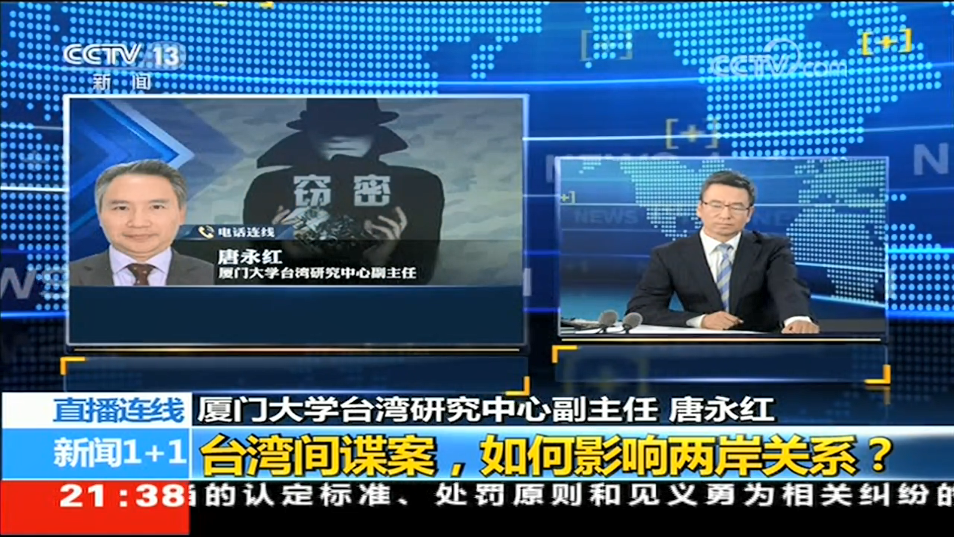 据此,9月18日,厦门大学台湾研究中心副主任暨两岸关系和平发展协同创新中心经济平台执行长唐永红接受了《新闻1+1》栏目的直播连线,就台谍案将如何影响两岸关系的问题,与主持人白岩松进行了对谈。