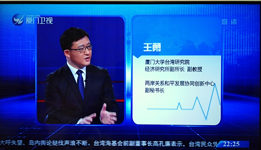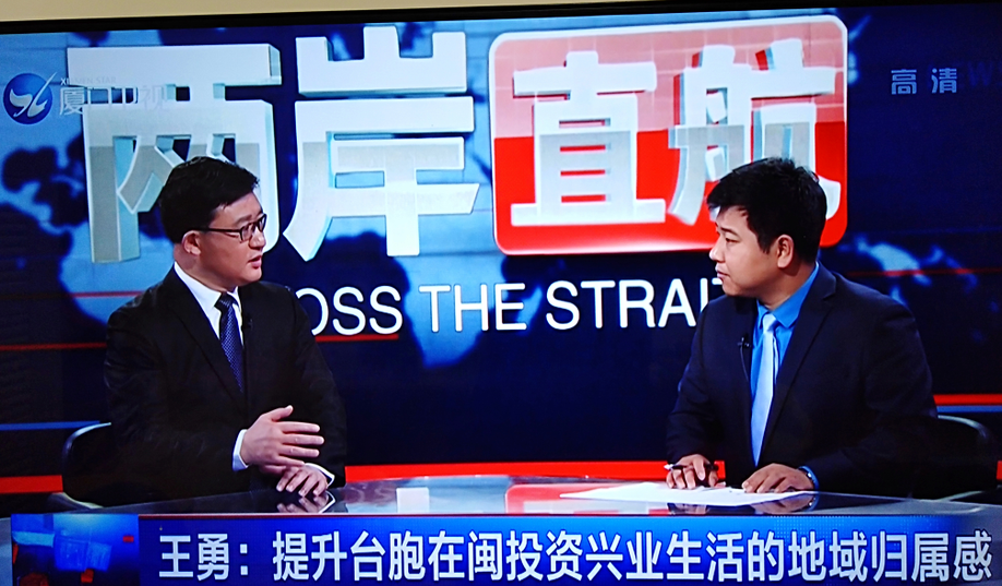 2018年3月27日傍晚,两岸关系和平发展协同创新中心副秘书长、我院经济所副所长王勇副教授受邀于厦门卫视录制《两岸直航》节目,本期节目主题为:“惠台举措诚意满,福建让台胞更有感”。同时,共同进行节目录制的其他两位连线嘉宾分别为:北京国际关系学院公共管理系于强副教授,台北台湾时事评论员张友骅教授。